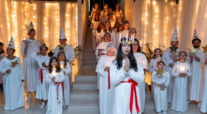 সুইডিশ ঐতিহ্যবাহী উৎসবগুলোর মধ্যে সবচেয়ে বিখ্যাত লুসিয়া উৎসব। এটি মূলত একটি প্রজ্জ্বলিত মোমবাতি মিছিল। লুসিয়া তার চুলে আলো পরে, তারপরে তার হ্যান্ডমেইডেনরা মোমবাতি বহন করে। আর ছেলেরা তাদের মাথায় কাগজের শঙ্খযুক্ত লাঠিতে তারা বহন করে। সবাই সাদা ফুল লম্বা গাউন পরে সুইডিশ ক্রিসমাস গান গেয়ে থাকেন।